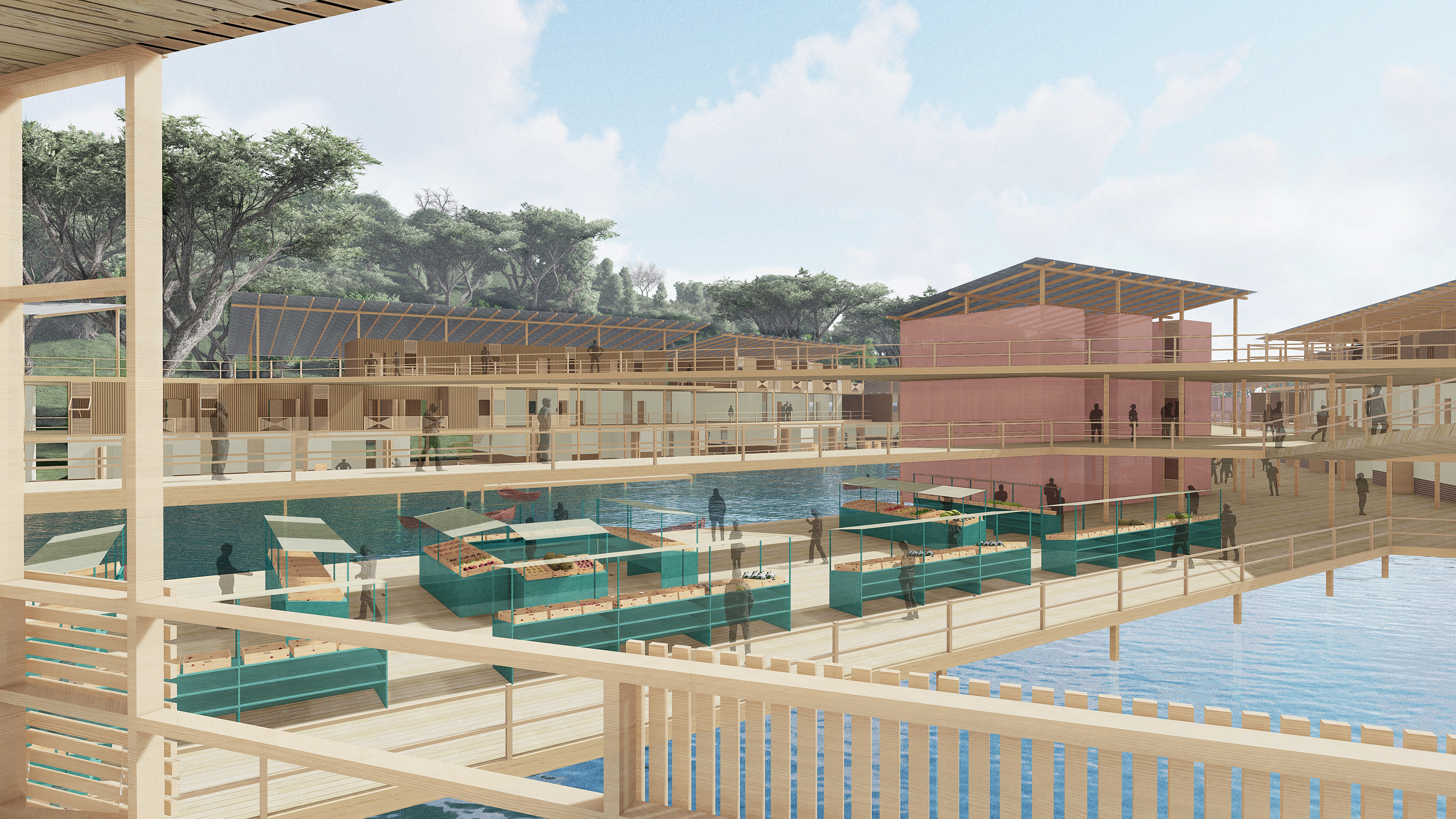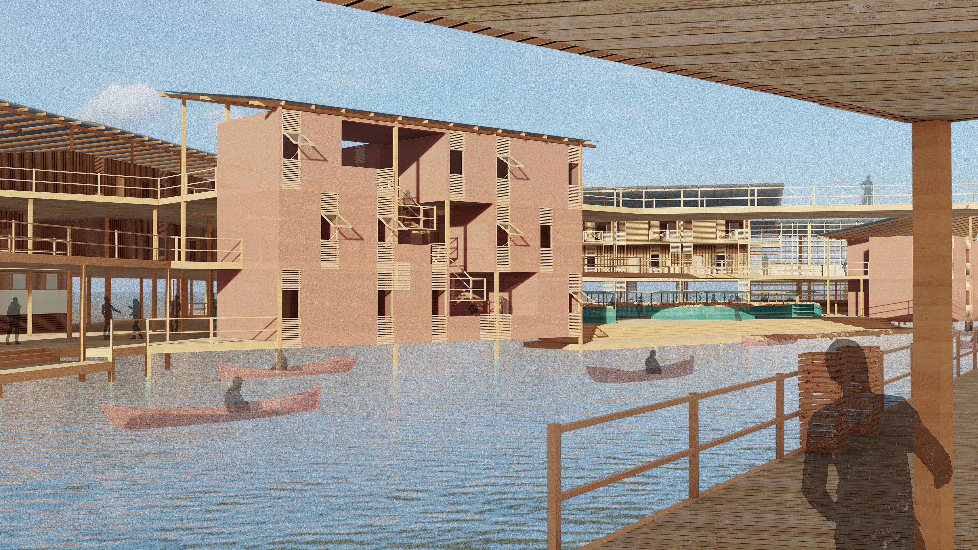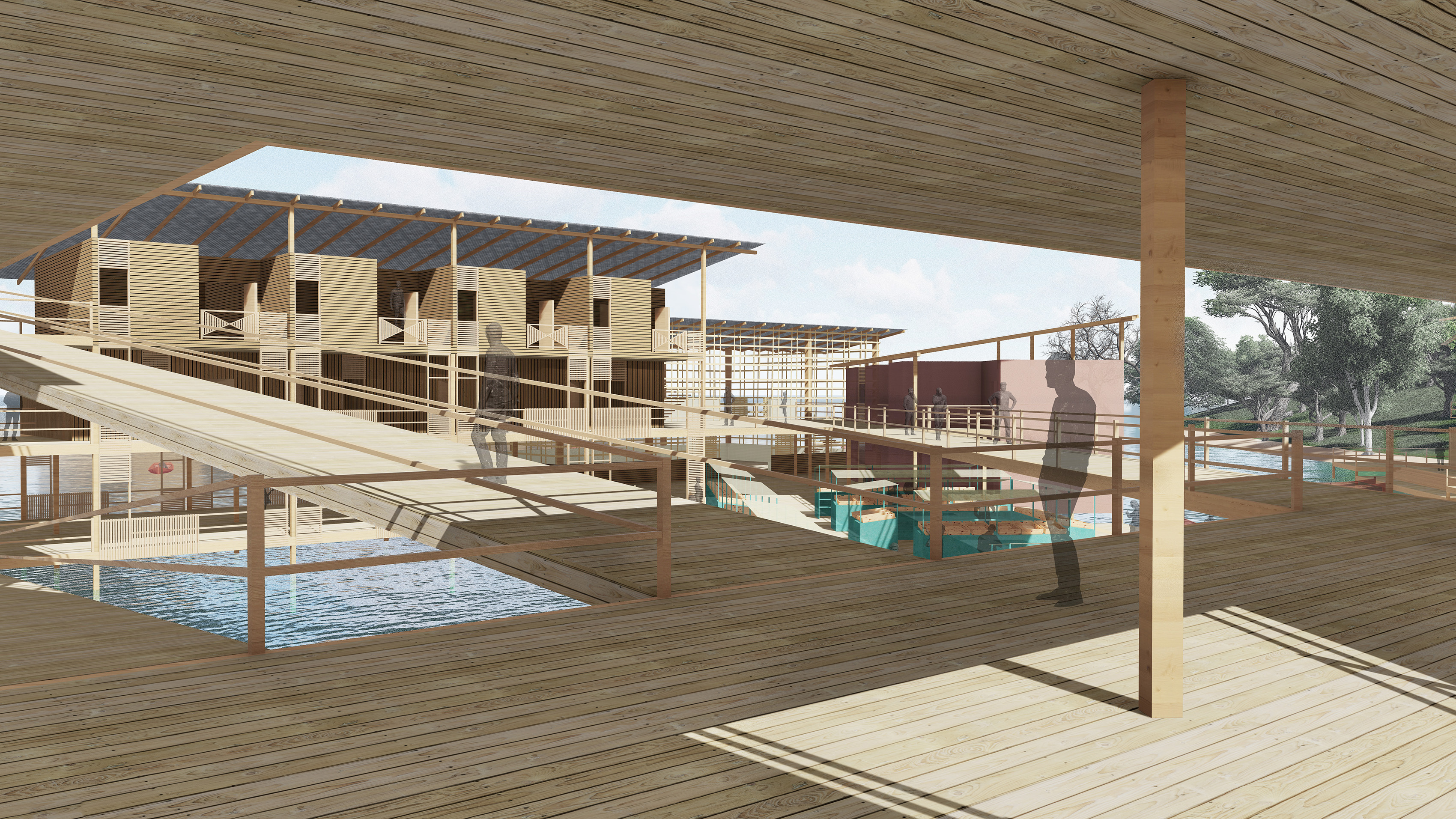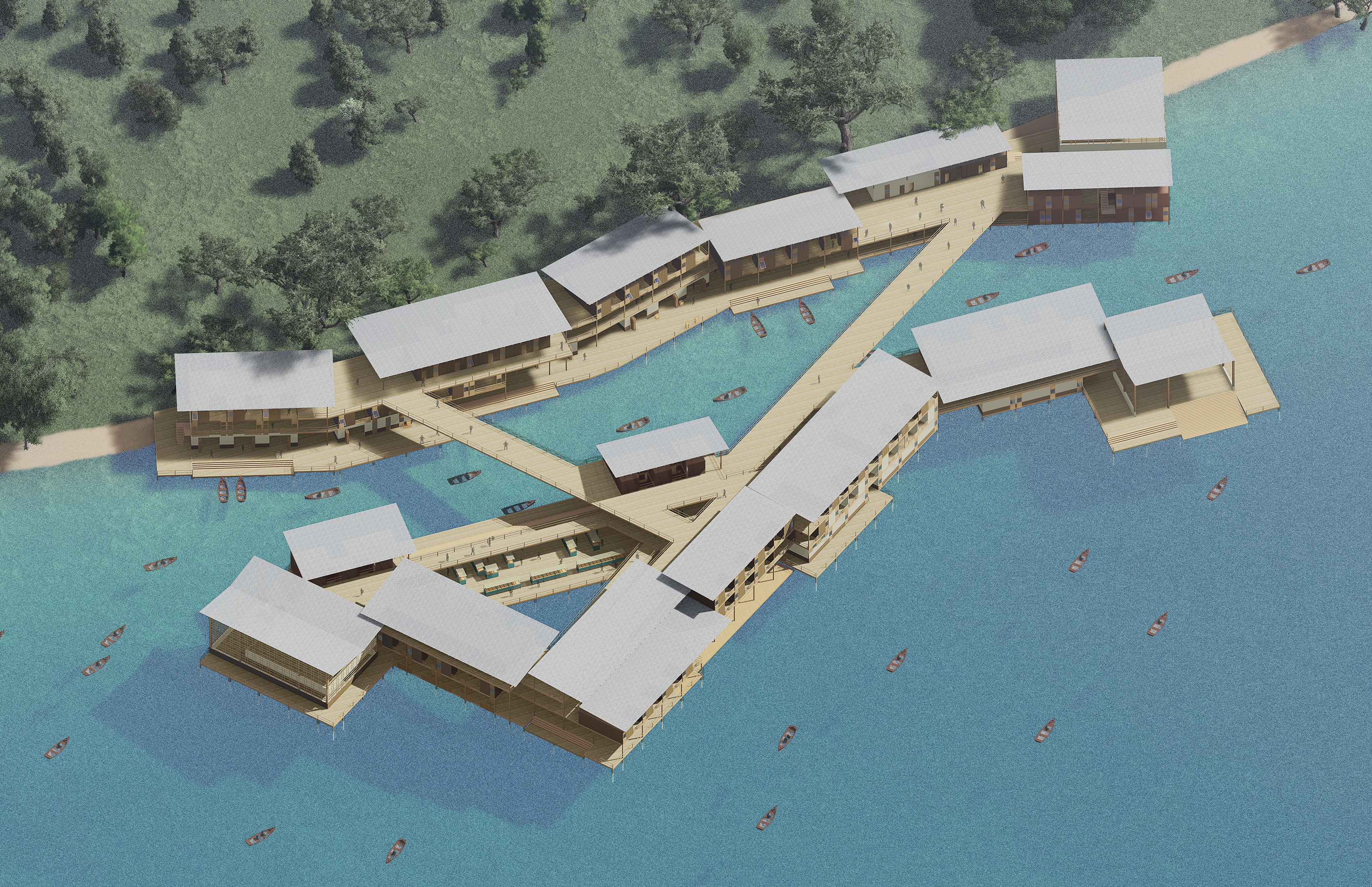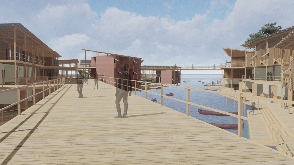 M.ARCH. fishing village project Team member: Ali Ahmed First Floor Second Floor Roof Plan View of Village Entrance Dormitory Building Market Area Stores next to the Channel Overlook the Market Area Birdeye View of the Whole Village Related