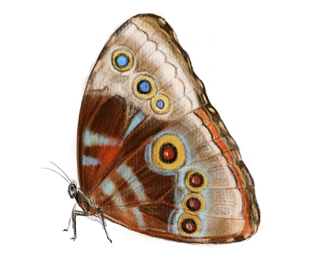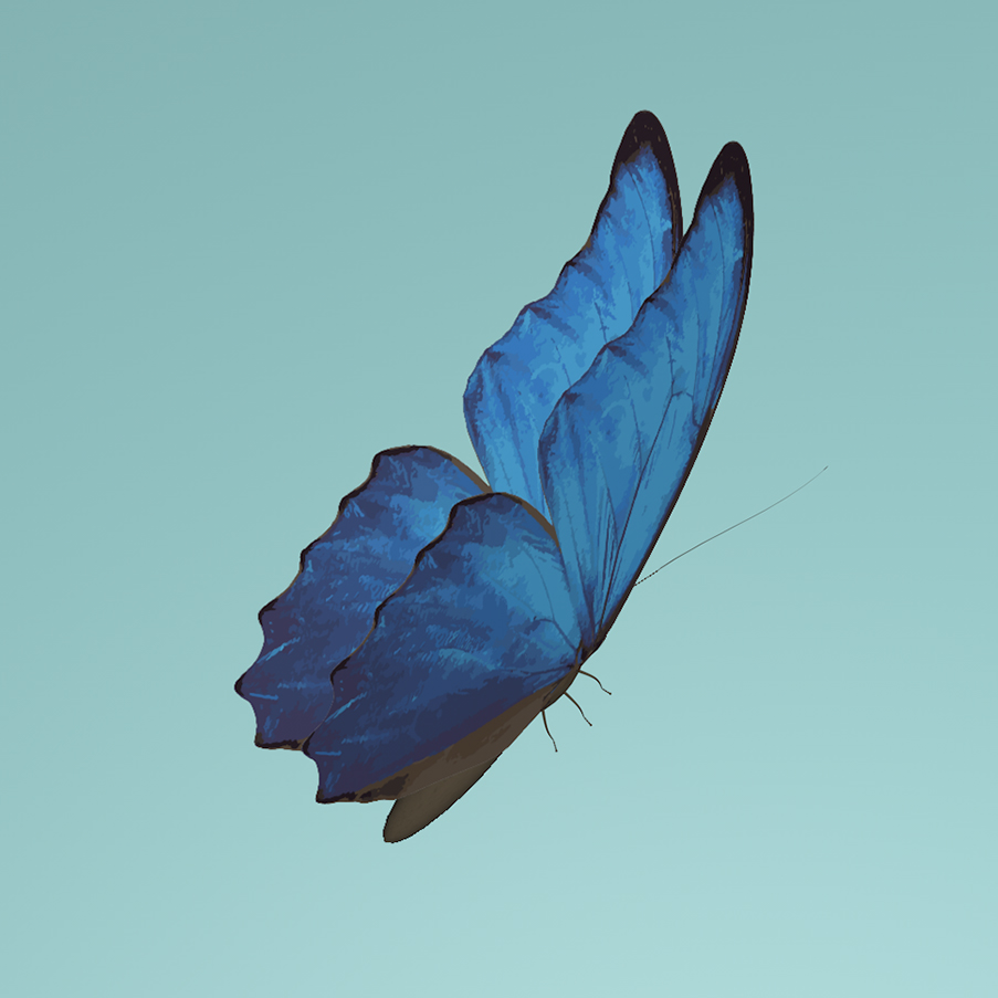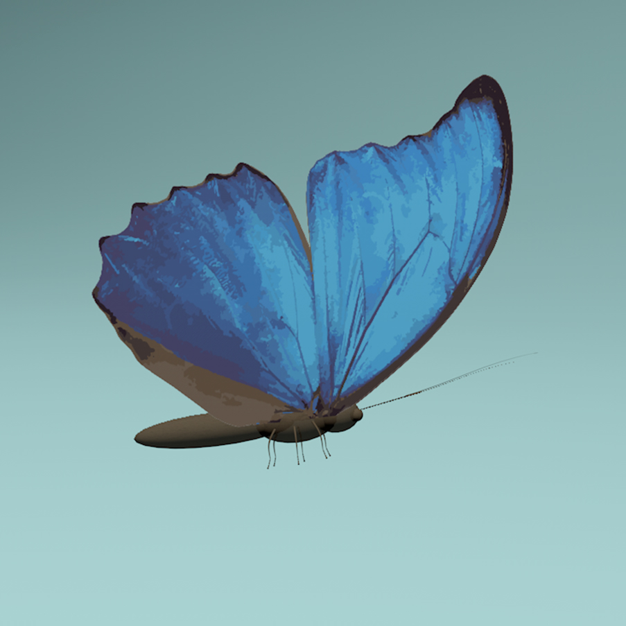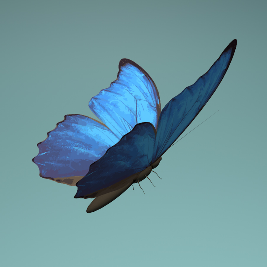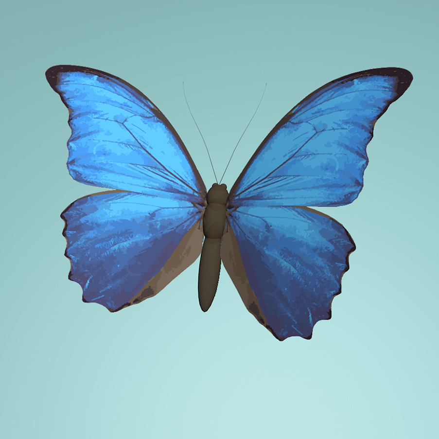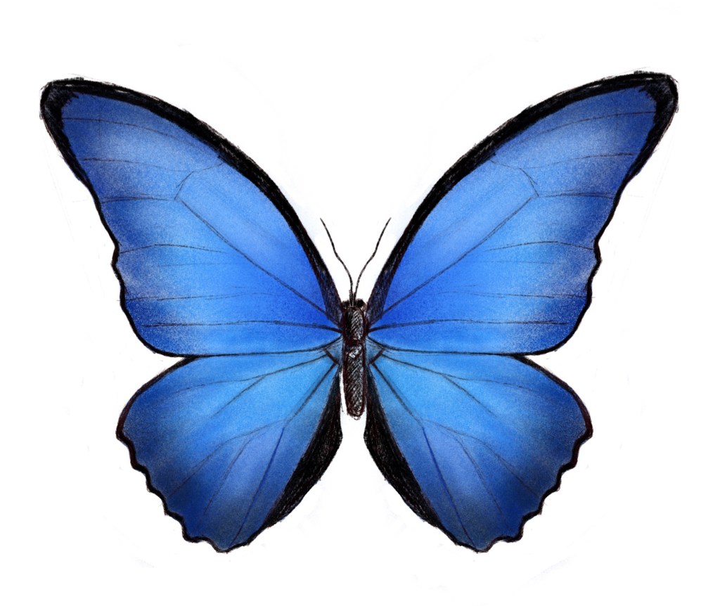 The butterfly I choose is morpho butterfly, I was amazed by its splendid blue color. The interesting thing I found online is the blue colors are not a result of pigmentation but rather are an example or iridescence. (an optical phenomenon characterized as the property of surfaces in which hue changes according to the angle from which the surface is viewed.)